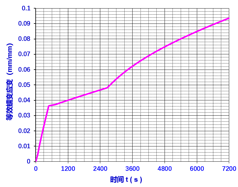 图9 各温度时间段的变形量 由图10可知,蠕变应变随时间增加而增加,但增速逐渐减小。这一趋势表明在长期高温作用下,蝶板材料会发生持续的塑性变形,但变形速率随时间延长而降低,最后材料的蠕变行为将趋于稳定。