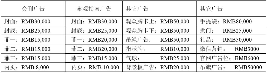 为方便知名企业借助本次展会的国际影响力,展示企业实力、提升品牌形象,组委会特设展会赞助方案。高效赞助方案,将给您在展前、展中、及展后带来更多商机、增强参展效果。